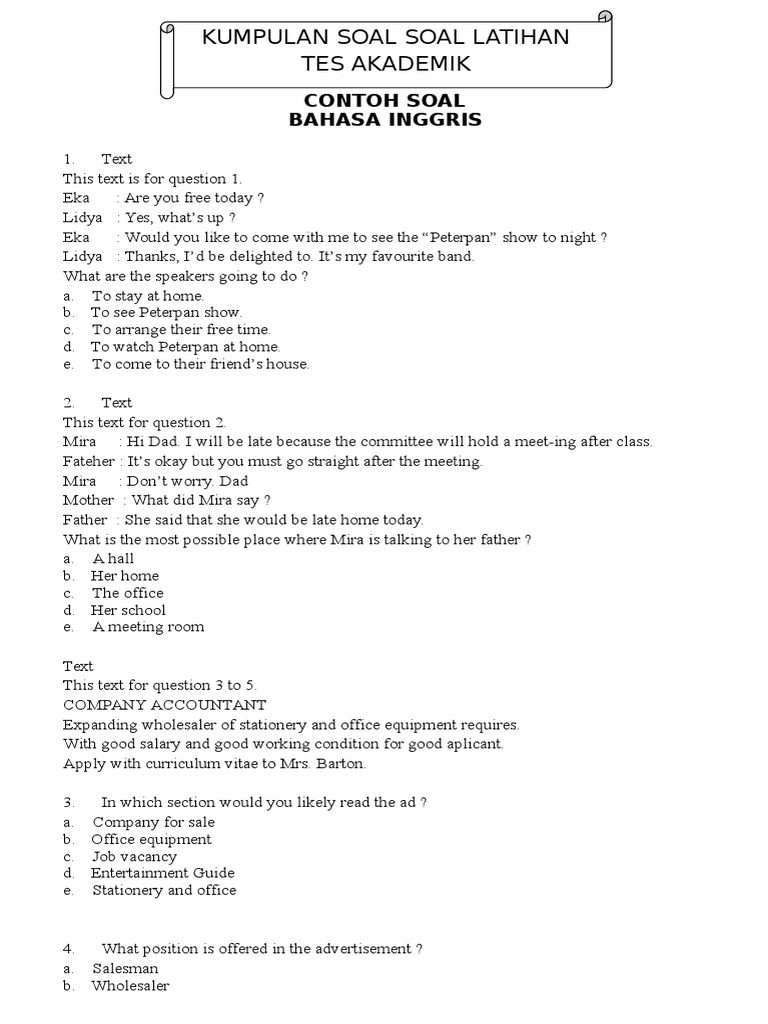 Inilah contoh soal tes tertulis cleaning service dan hal lain yang berhubungan erat dengan contoh soal tes tertulis cleaning service serta aspek k3 secara umum di indonesia. Contoh soal tes tertulis cleaning service konsultank3 com contoh soal tes cleaning service di rumah sakit, tugas cleaning service di rumah sakit mengenal komponen crane overhead higiene industri di rumah sakit filetype ppt tugas kewajiban dan kewenangan ahli k3 umum topik k3 terbaru sk tenaga ahli contoh proposal pembangunan dermaga tambatan. Kisi kisi soal tes cpns soal. Maybe you would like to learn more about one of these? Contoh soal tes cleaning service di rumah sakit contoh soal terbaru from i1.rgstatic.net check spelling or type a new query. Terdapat 50 pertanyaan (40 soal grammar + 10 soal vocabulary) dan setiap soal bernilai satu poin. Basic customer service terms and how to use them ⅱ knowledge of foods. Contoh soal tes cleaning service. Soal tes kemampuan bahasa inggris di bawah ini dapat digunakan untuk mengukur sejauh mana kemampuan bahasa inggris anda. Basic customer service operations 3. Dari contoh soal ini kita bisa mengetahui upah dari masing masing karyawan rata rata gaji karyawan yang diterima gaji karyawan tertinggi dan jagi karyawan terendah. Soal dan jawaban akomodasi perhotelan Contoh soal tes kemampuan bahasa inggris dan jawabannya.